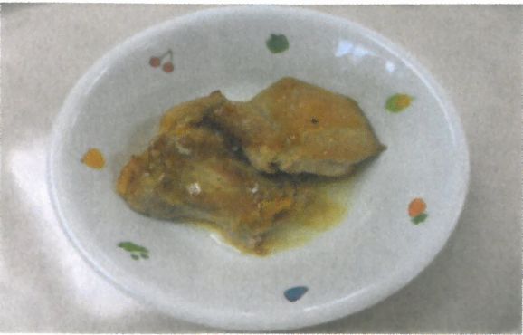〜鶏のマーマレード煮〜 ※1人分 【材料】 とりもも肉 40g マーマレードジャム 6g 醤油 少量 すりおろしにんにく 少量 ◆◆作り方◆◆ 1.鶏肉にマーマレードジャムを加え、まんべんなくからめる。 2.醤油・にんにくを加え、よく混ぜ合わせる。 3.鍋で煮る。焦げやすいので火加減には注意!少量の水を加えてもOK。 4.鶏肉に火が通ったら完成! ☆鶏肉を調味料と合わせて漬け込み、時間をおくと更に味がよくしみておいしいですよ ☆調味料はお好みで量を加減してもOK